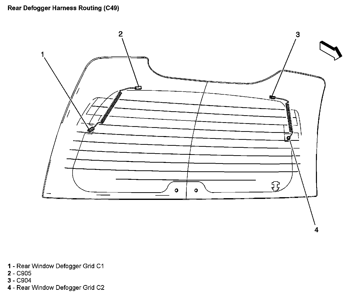 Rear Defogger Harness Routing (With RPO Code C49):