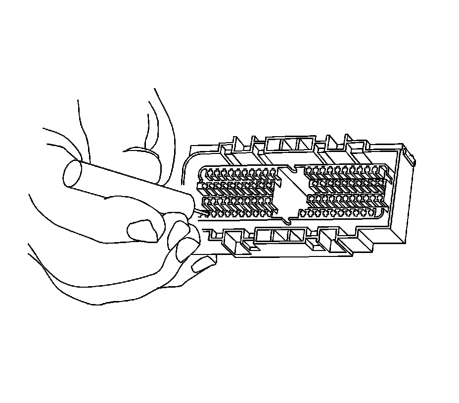 9. Use the J 38125-12A (GM P/N 12094429) tool to release the terminals by lifting the terminal retaining tabs on the inside of the connector. See the release tool cross reference in the Reference Guide of theJ-38125 to ensure that the correct release tool is used.