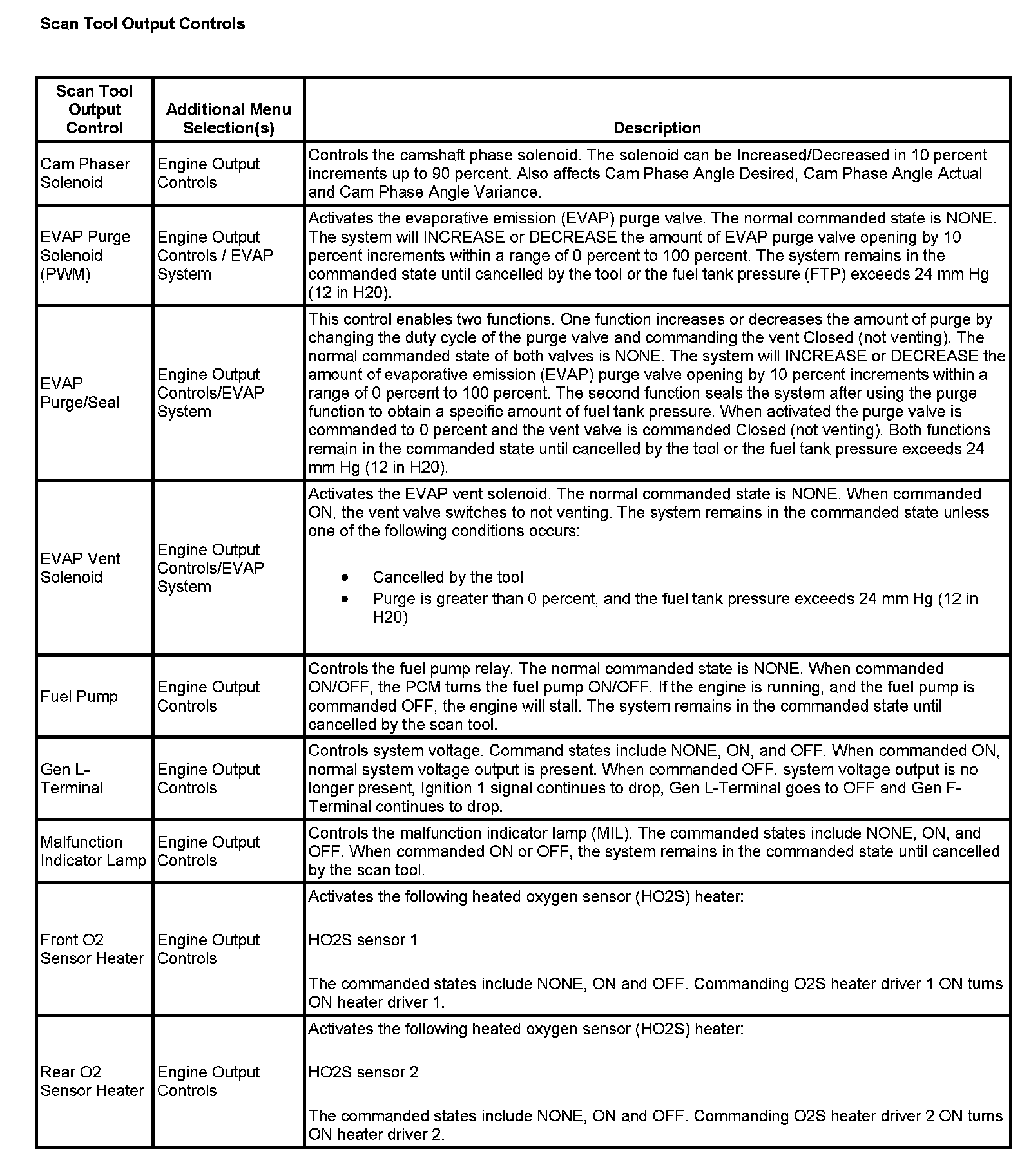 Scan Tool Output Controls: