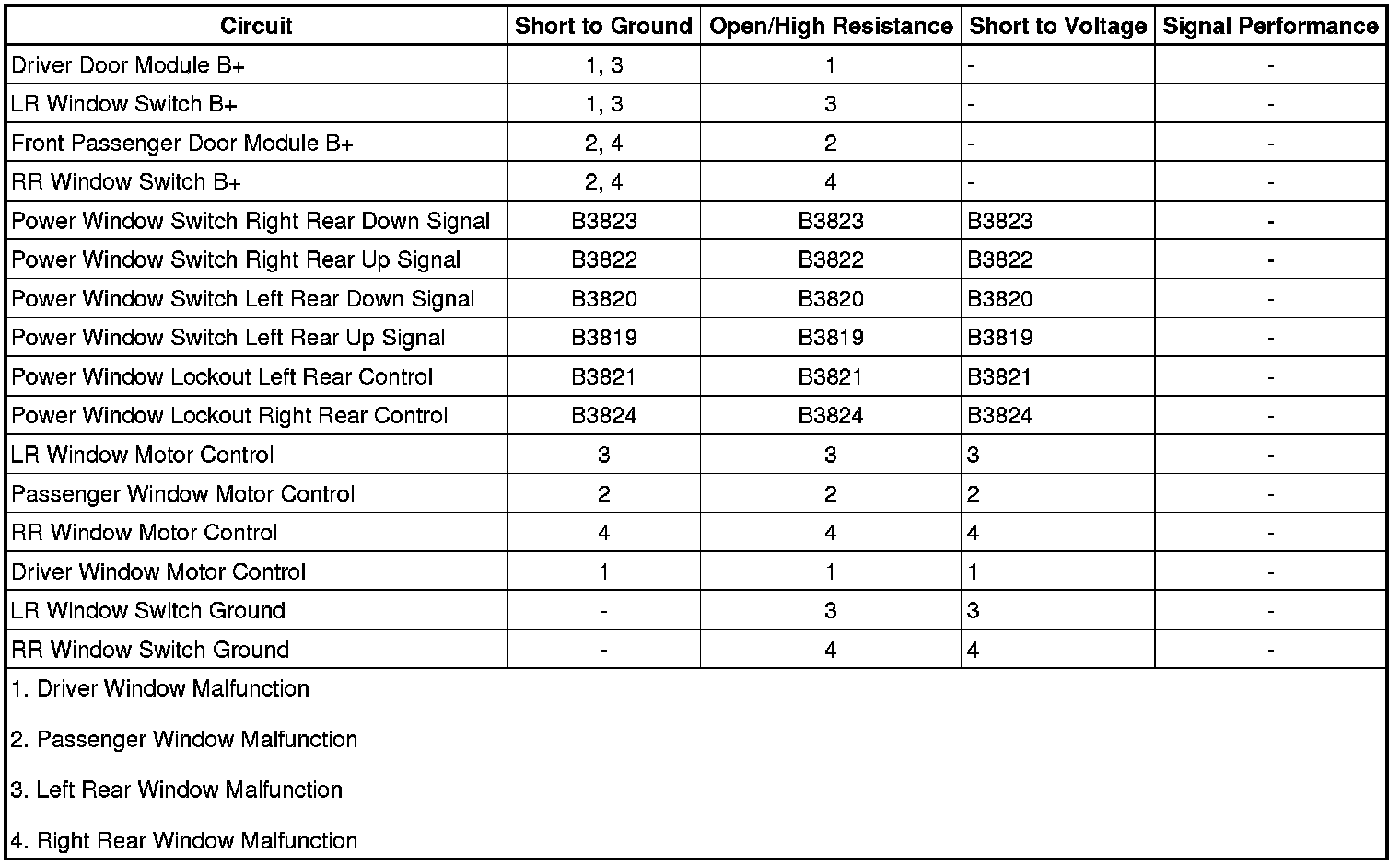 • If either rear passenger power window is inoperative, refer to Rear Passenger Window Malfunction.
