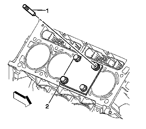 2. Install the fixture plate (3), bolts (1), and bushing (2) onto the engine block deck.