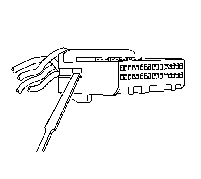 2. Use a small flat-bladed tool to release the terminal position assurance (TPA) by inserting the tool in the small recess on the side of the connector and pushing up until the TPA releases from the connector body. The TPA should raise just slightly. Do not try to remove the TPA.