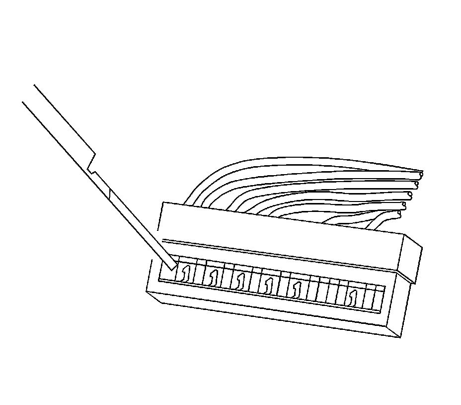 6. Use the J 38125-12A (GM P/N 12094429) tool to release the terminals by pressing on the tang. See the release tool cross reference in the Reference Guide of theJ-38125 to ensure that the correct release tool is used.