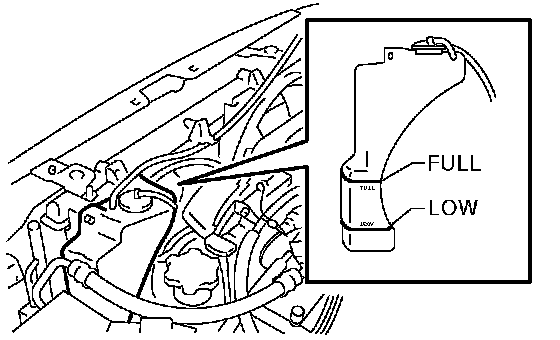 3. Fill engine coolant into the reservoir tank up to "FULL" level.