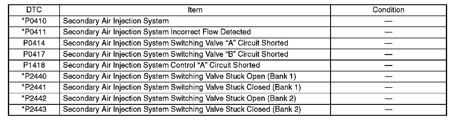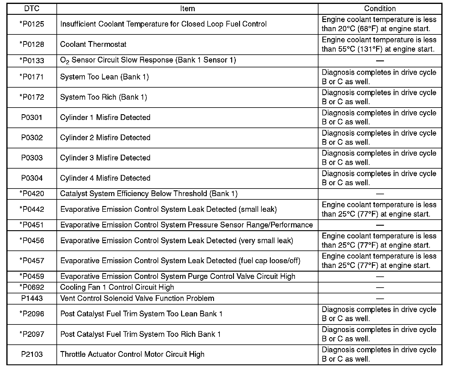 - Carry out the diagnosis which is marked* on DTC twice, then, after finishing first diagnosis, stop the engine and do second time at the same condition.