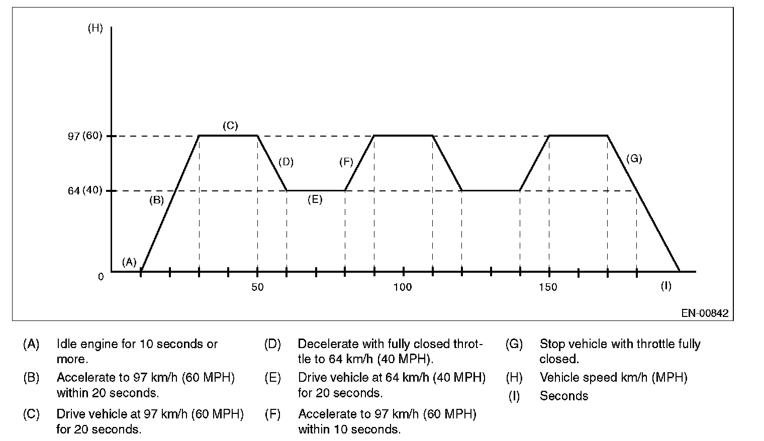 2. DRIVE CYCLE A (AFTER RUNNING 20 MINUTES AT 80 KM/H (50 MPH), IDLE ENGINE FOR 1 MINUTE.