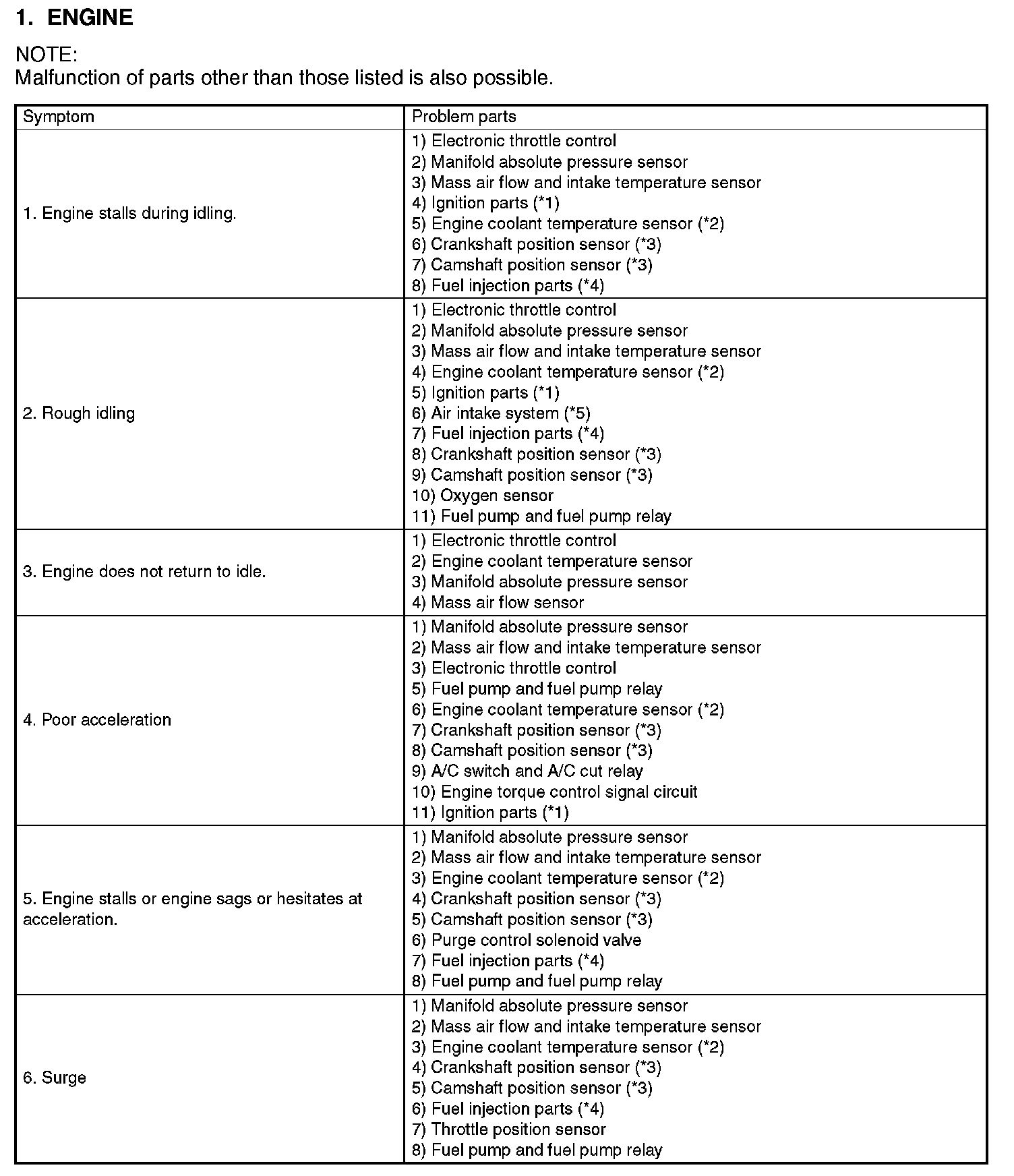 GENERAL DIAGNOSTIC TABLE