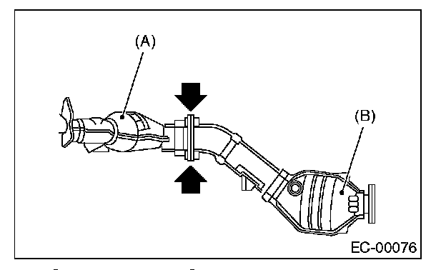 2. Separate the front catalytic converter (A) from rear catalytic converter (B).