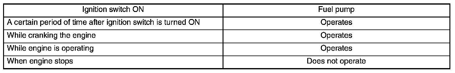 FUEL PUMP CONTROLThe ECM controls the operation of the fuel pump through the fuel pump control unit, based on signals from the crankshaft position sensor. To improve safety, a "fuel pump stop signal" is sent from the ECM to the fuel pump control unit to stop the fuel pump if the engine stalls while the ignition switch is ON.