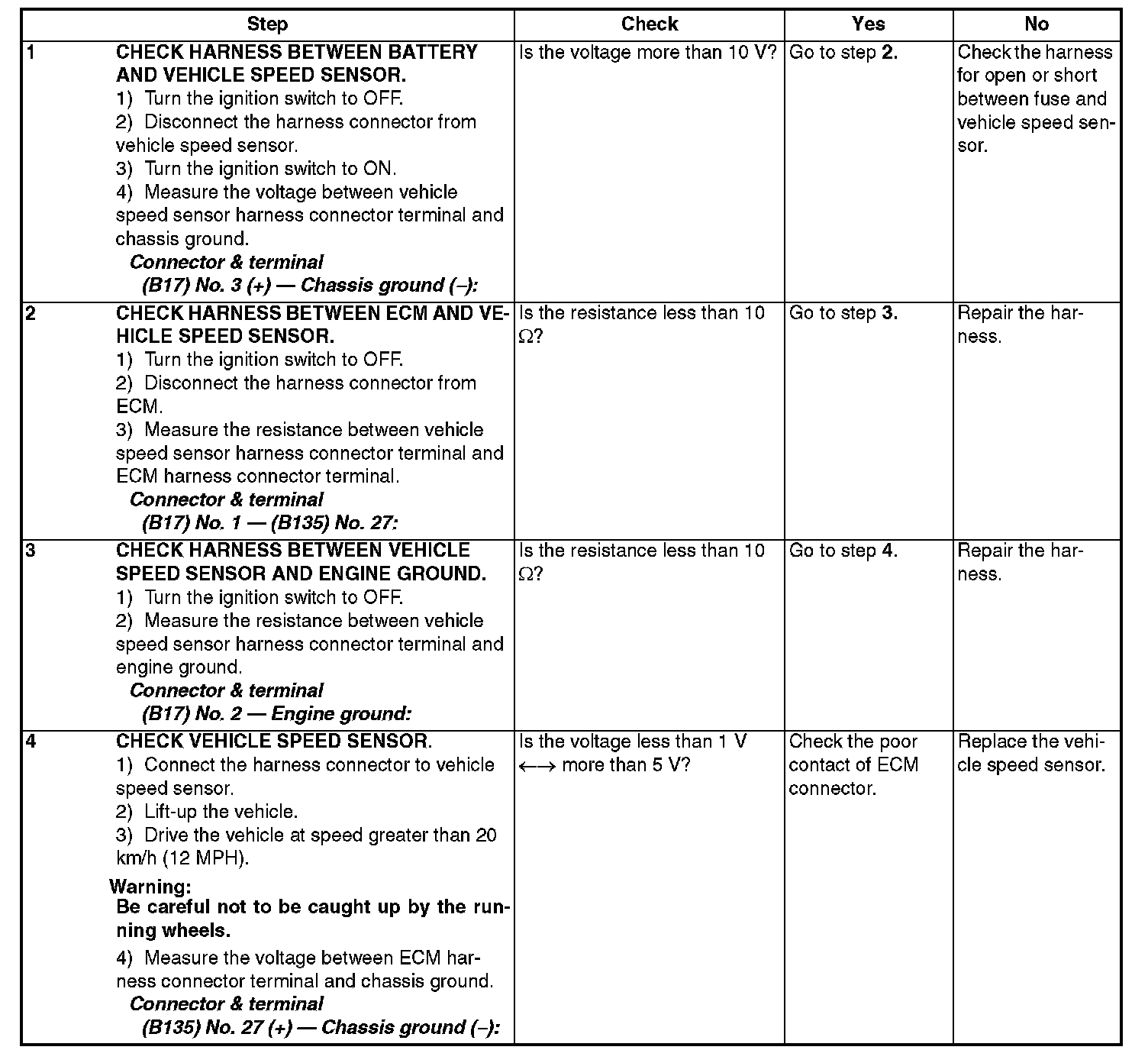 Open or short circuit of vehicle speed sensor system.