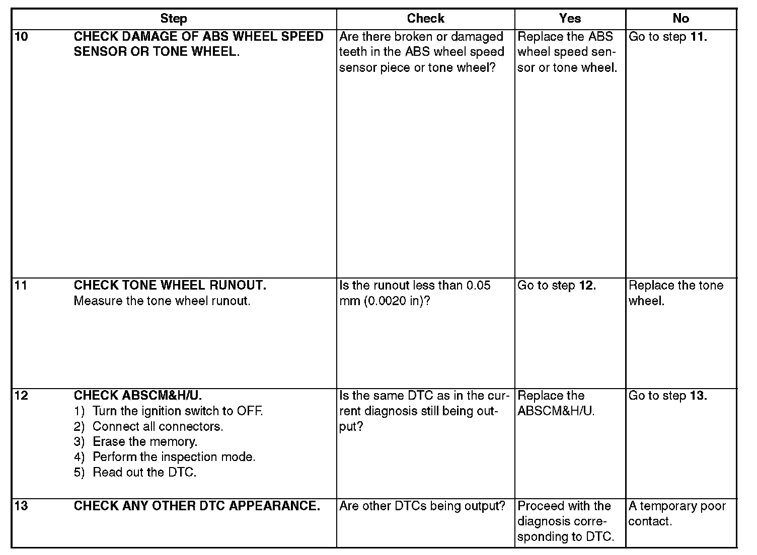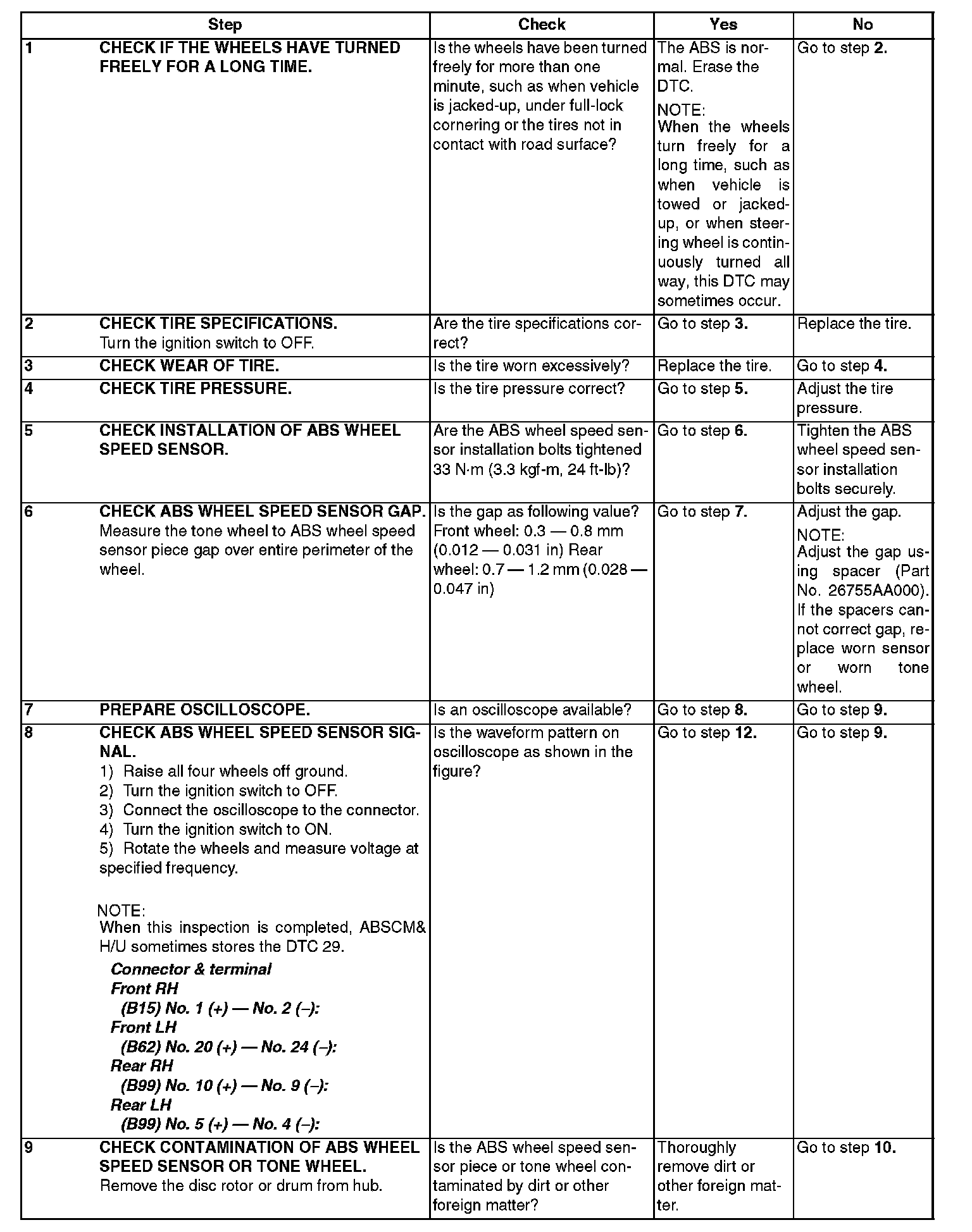 DTC 29 ABNORMAL ABS WHEEL SPEED SENSOR SIGNAL ON ANY ONE OF FOUR SENSORDIAGNOSIS: