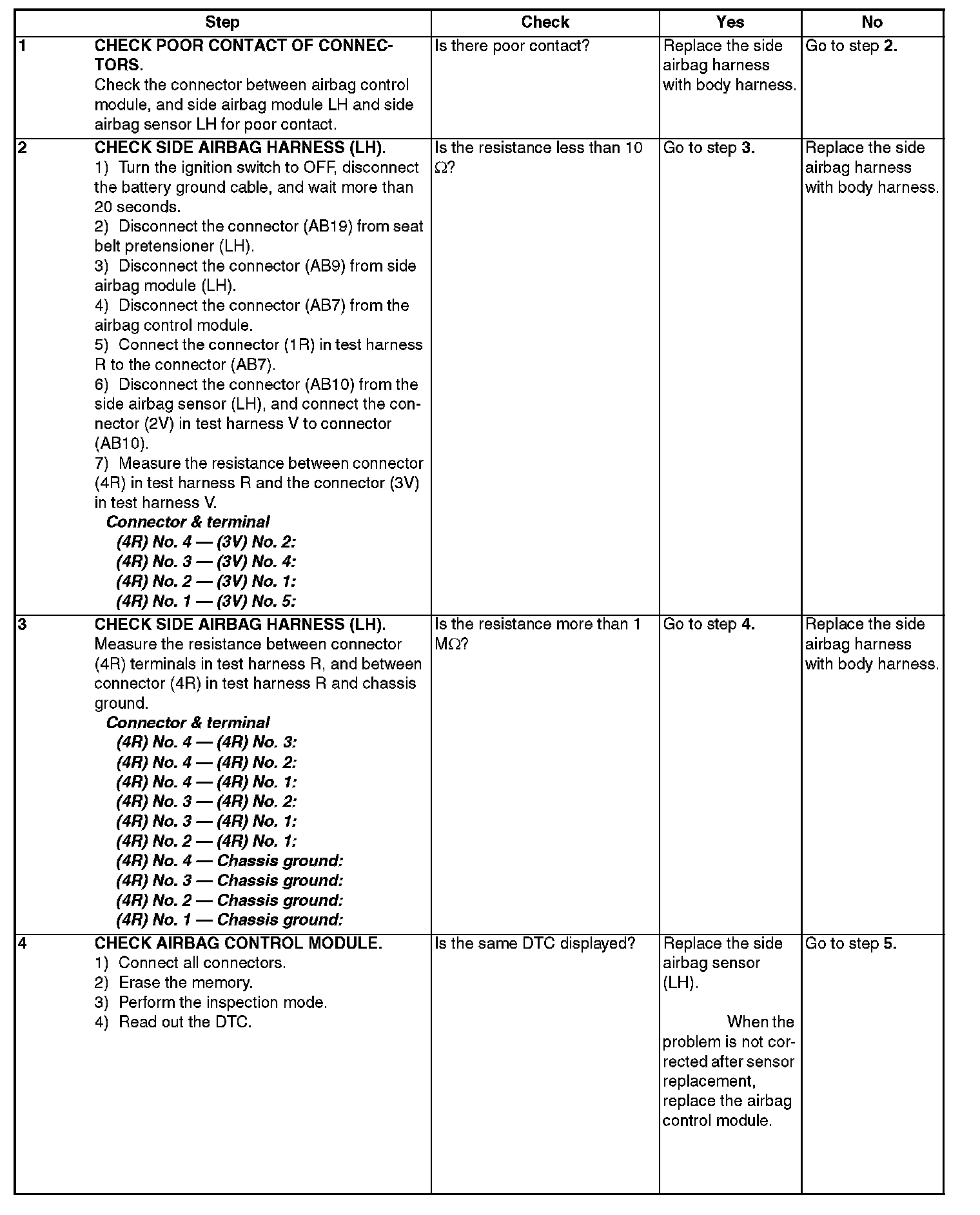 ^ Side airbag harness (LH) is faulty.