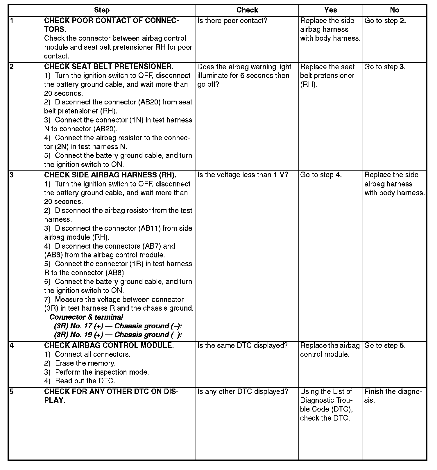 ^ Before replacing the airbag module, seat belt pretensioner, roll connector, control module and sensor, reconnect each part and confirm that the warning light operates properly.