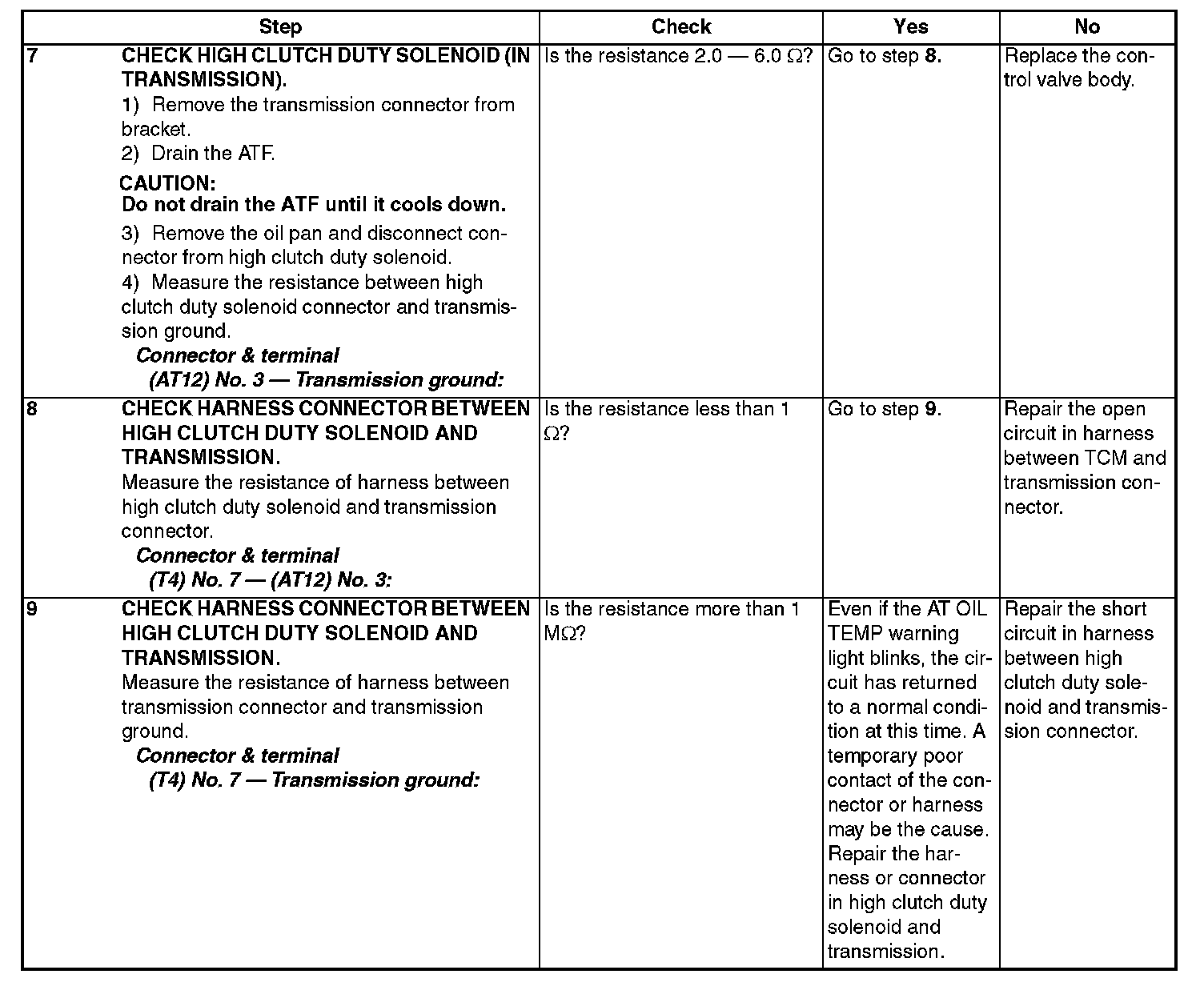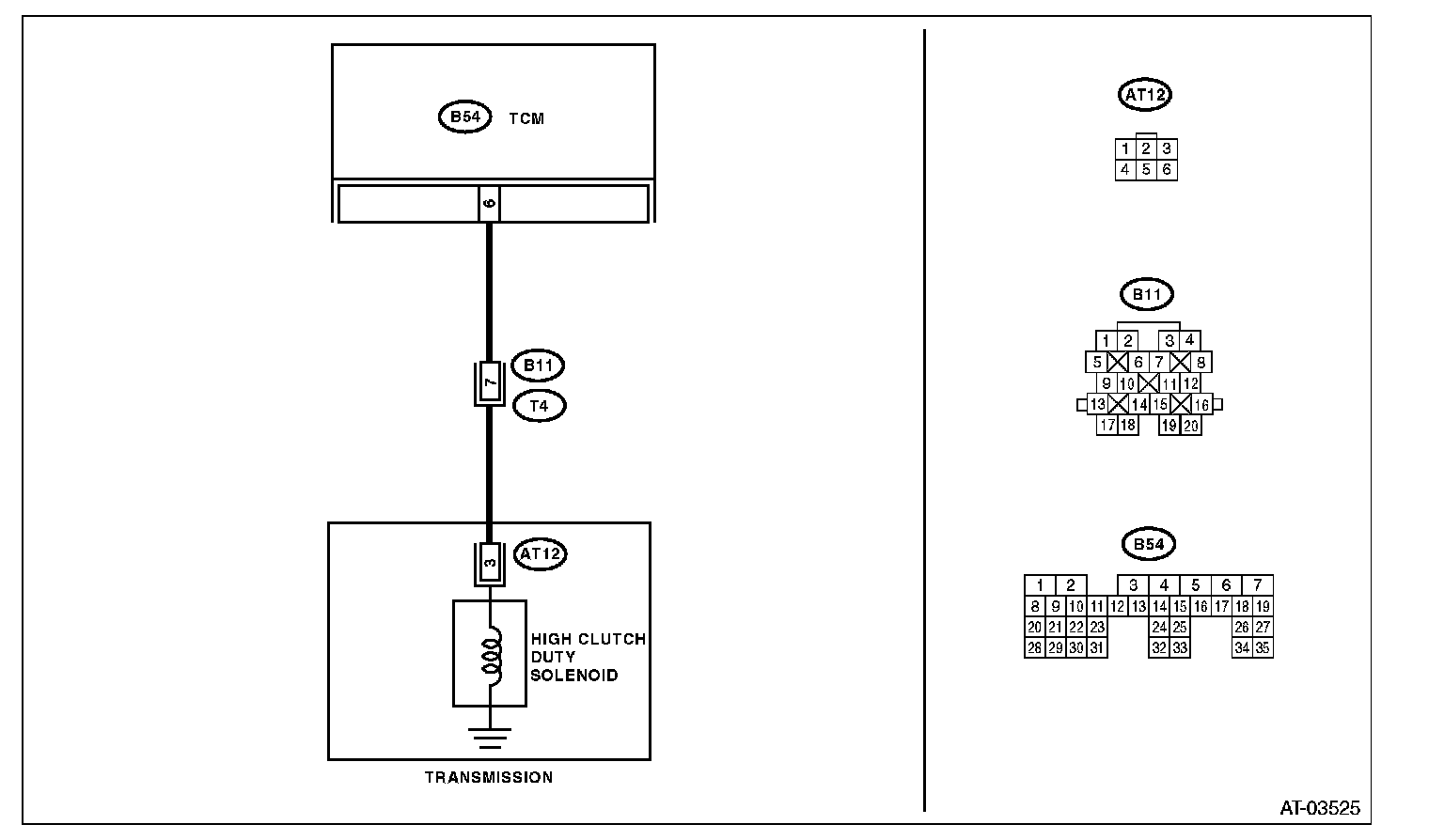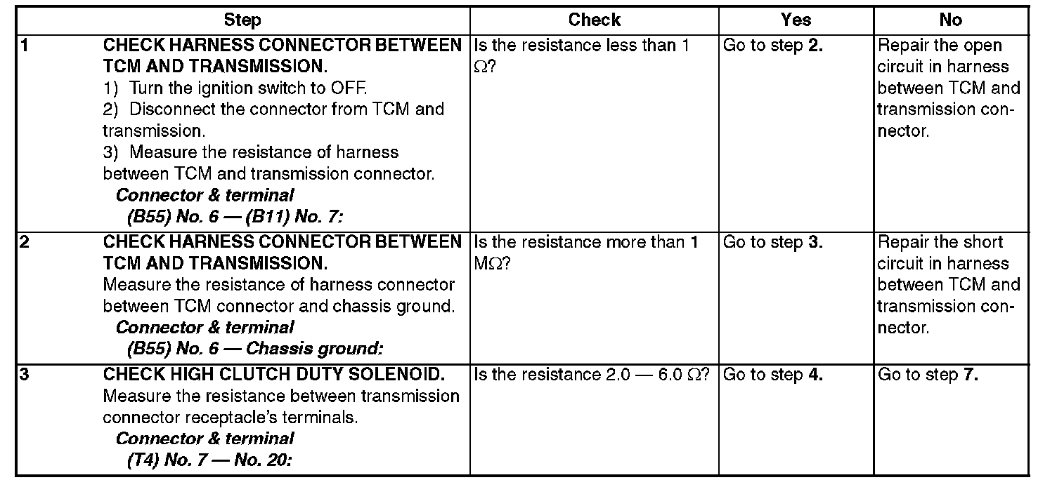 The output signal circuit of high clutch duty solenoid is open or shorted.