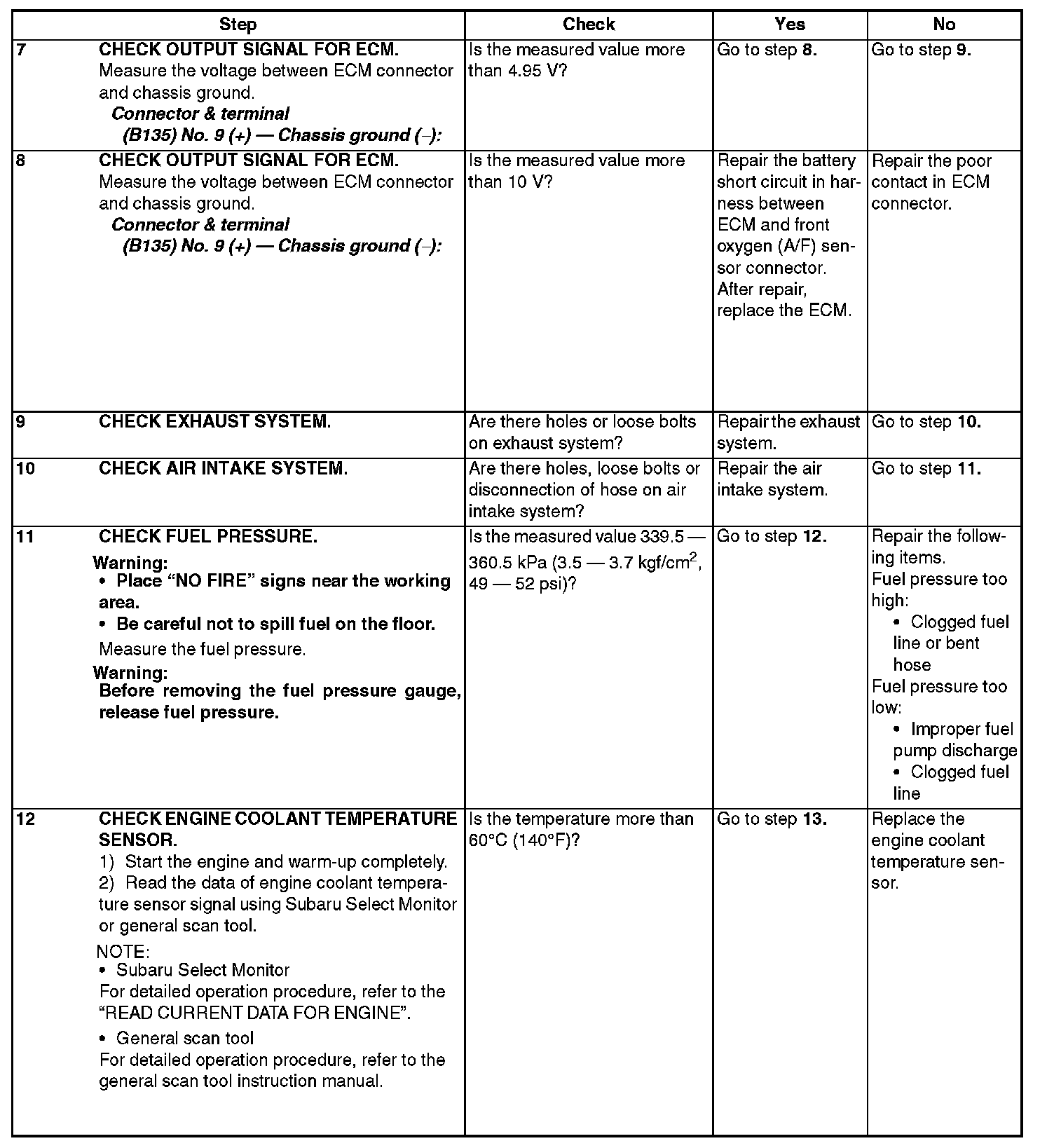 After repair or replacement of faulty parts, conduct Clear Memory Mode and Inspection Mode.