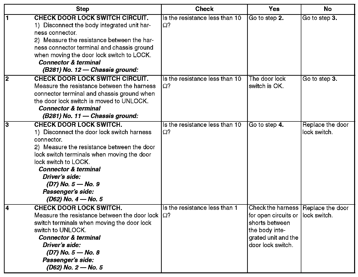 Check Door Lock Switch and Circuit