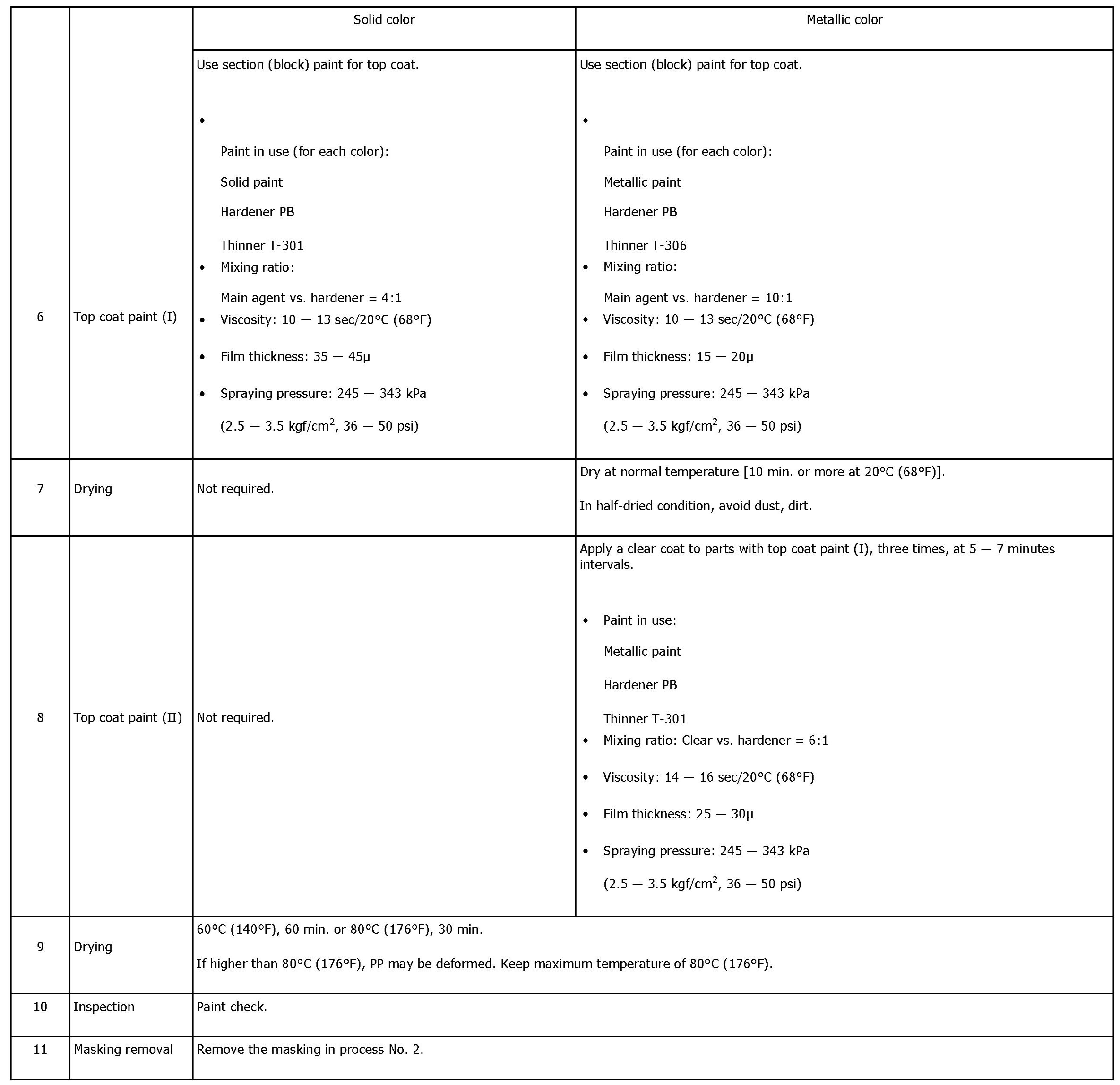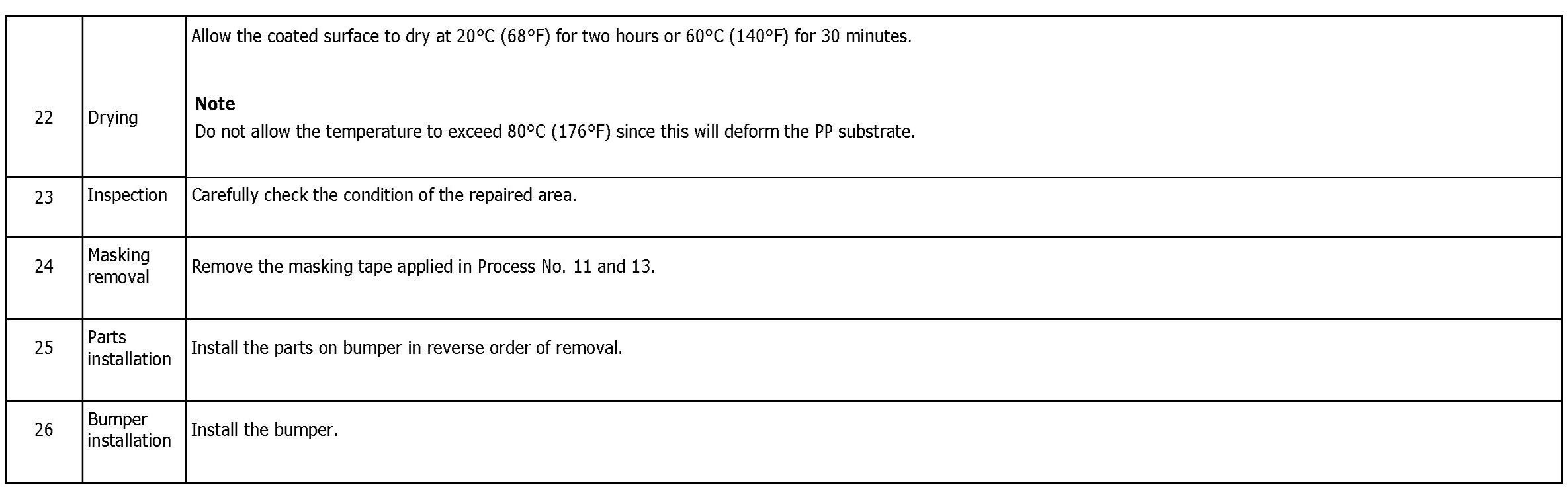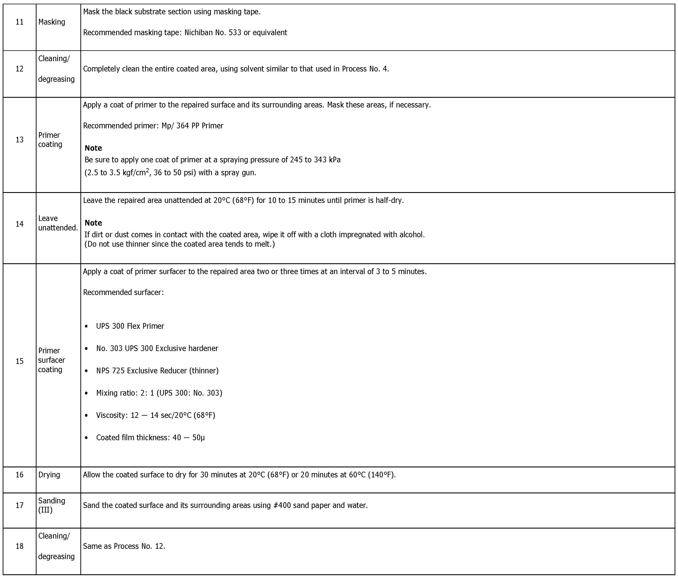 REPAIR INSTRUCTIONS FOR COLORED PP BUMPER