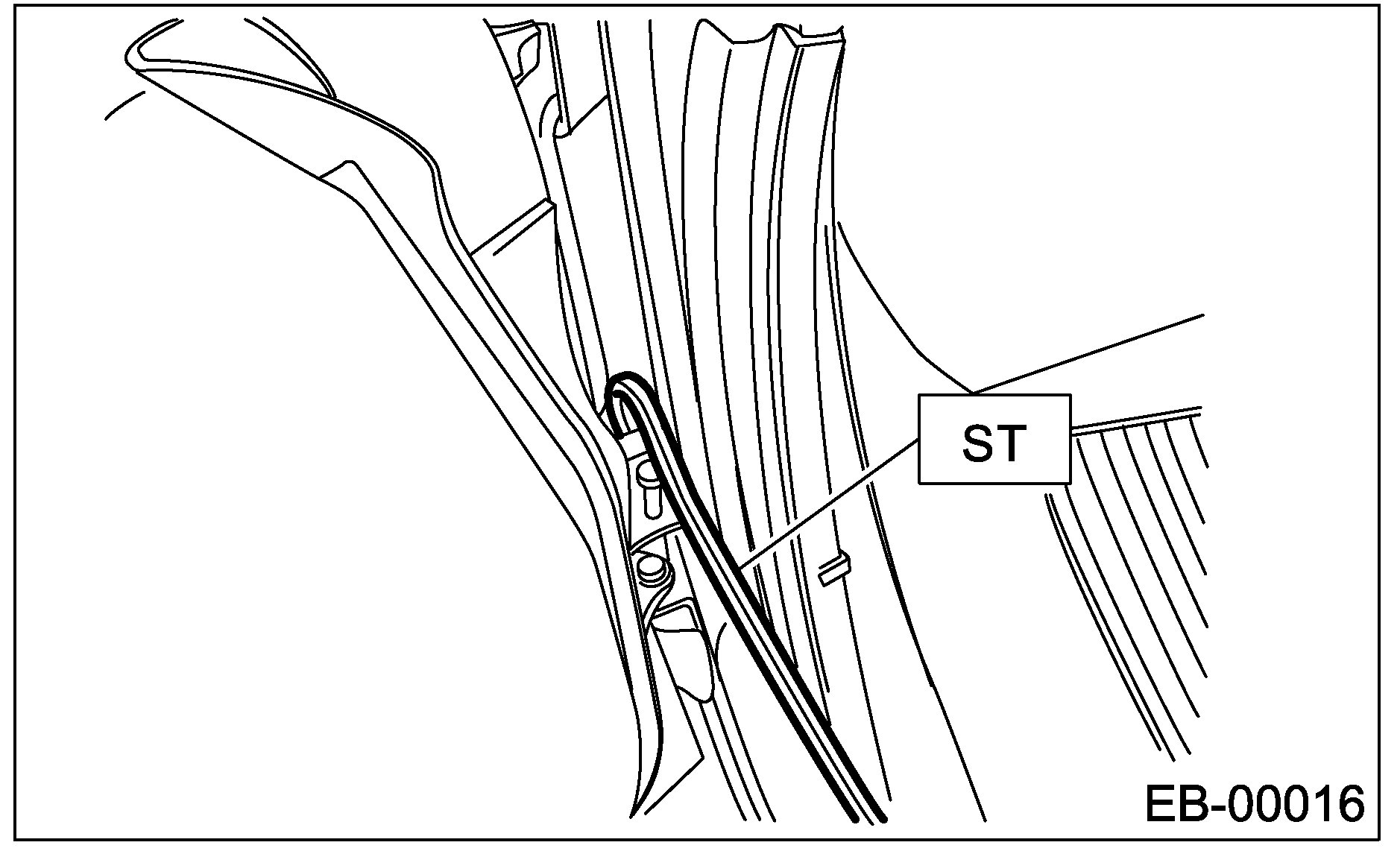 Using the ST, loosen the body-side bolts of upper and lower hinges to align the position of front door panel longitudinally and vertically.