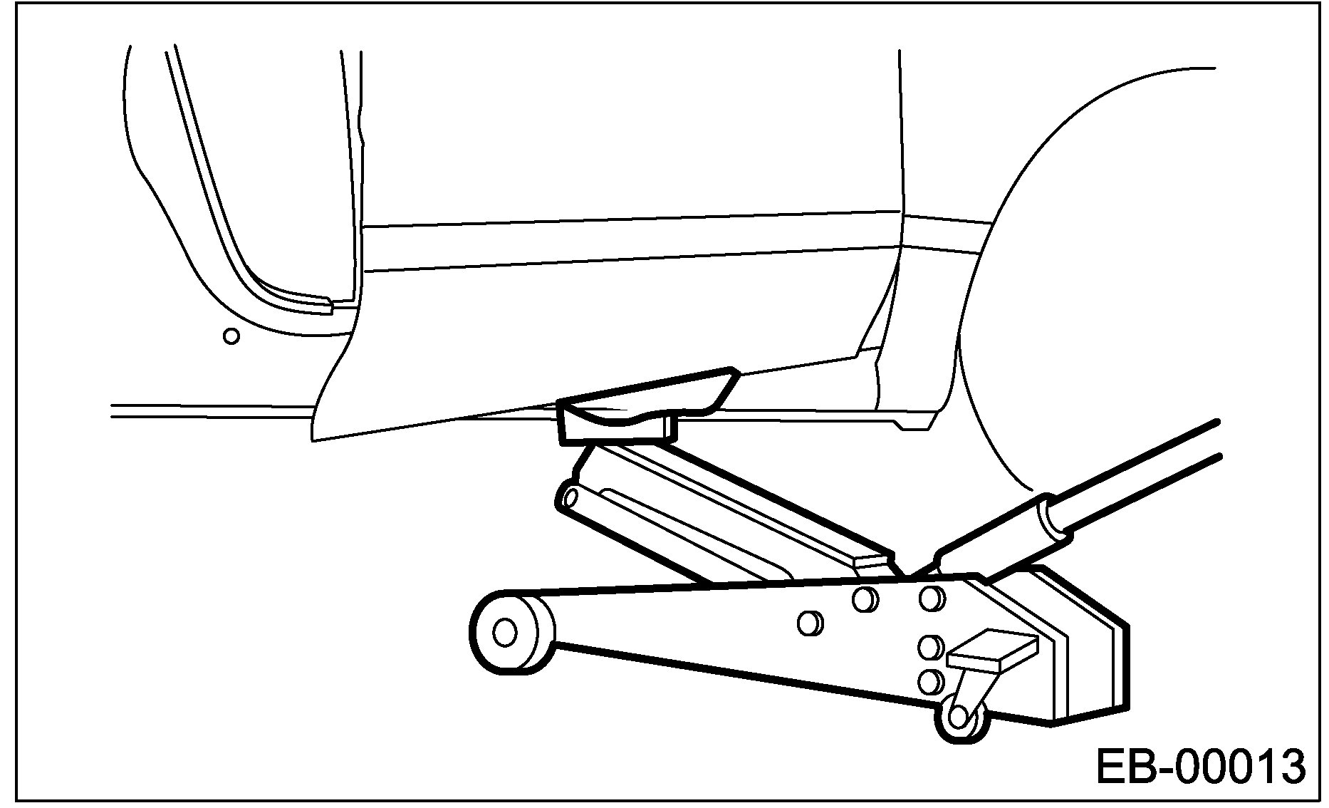 Put a wooden block on jack and place the jack under front door panel. Support the front door with the jack to protect it from damage.