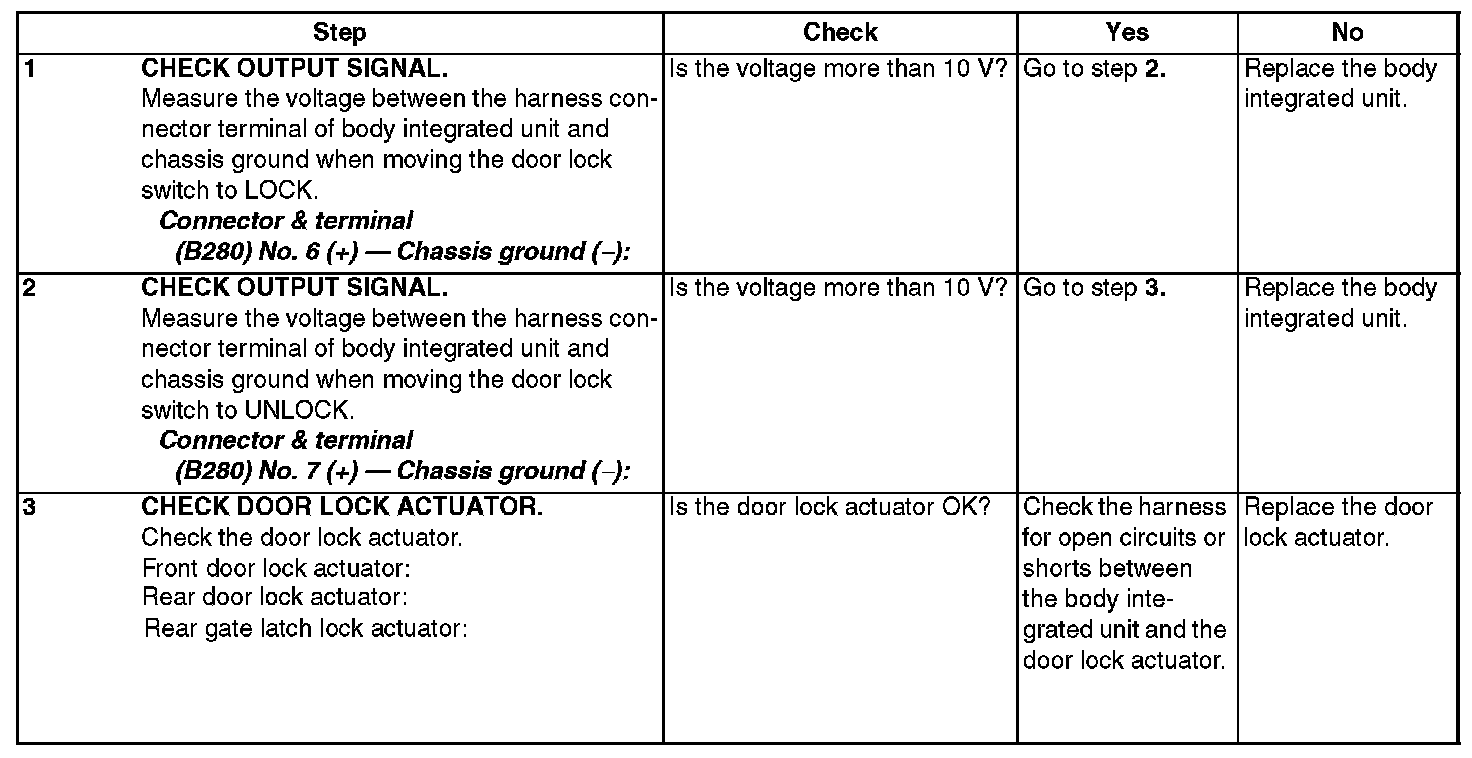 Check Door Lock Actuator and Circuit