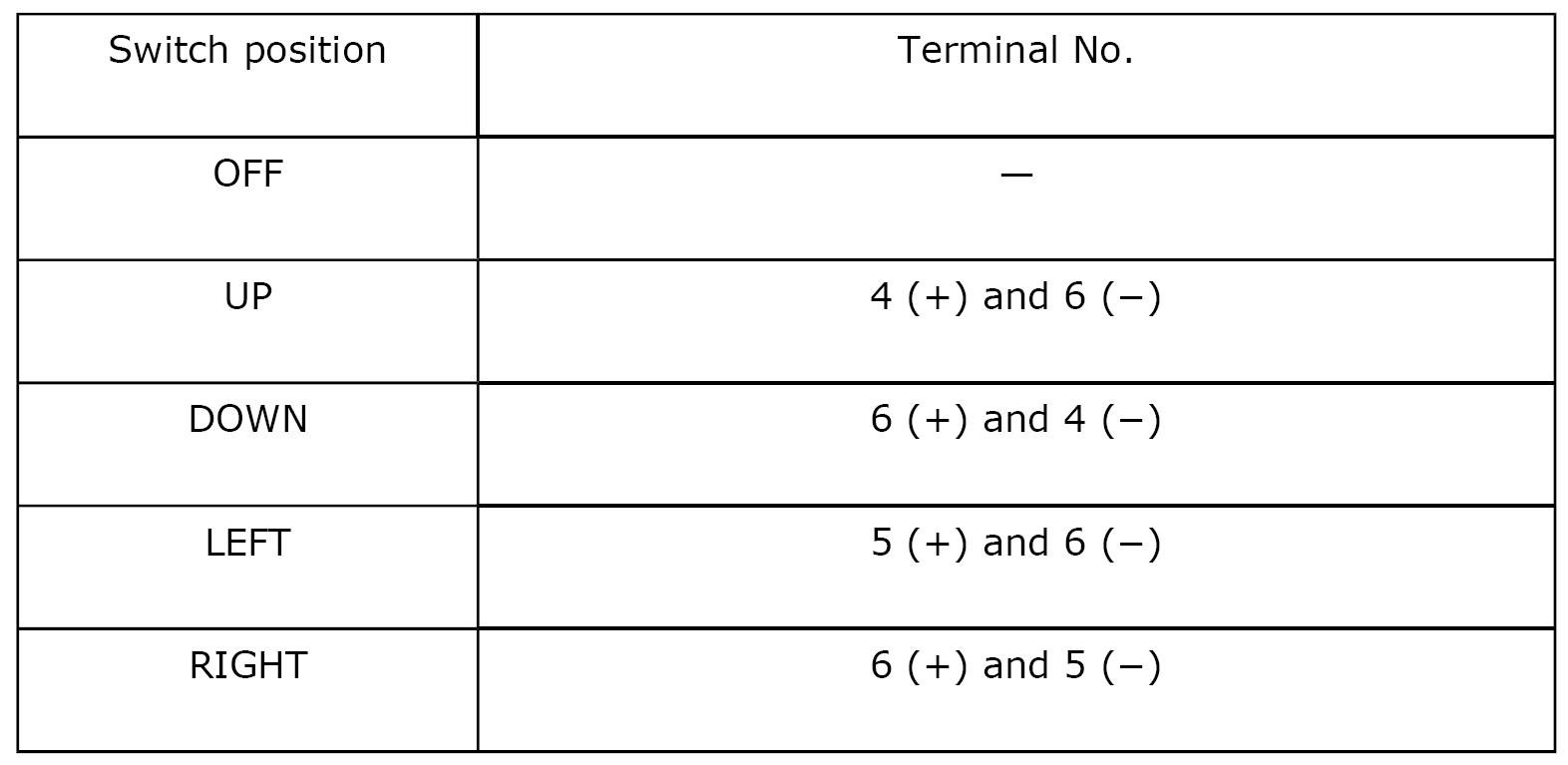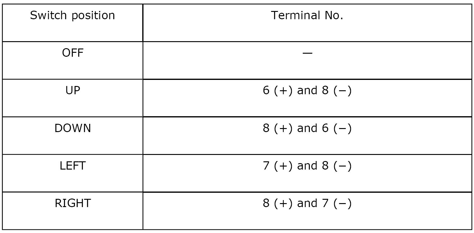 Check to ensure that the outer mirror moves properly when battery voltage is applied to terminals.