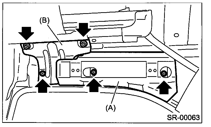 Remove the assist grip bracket (A) and sunroof bracket (B).