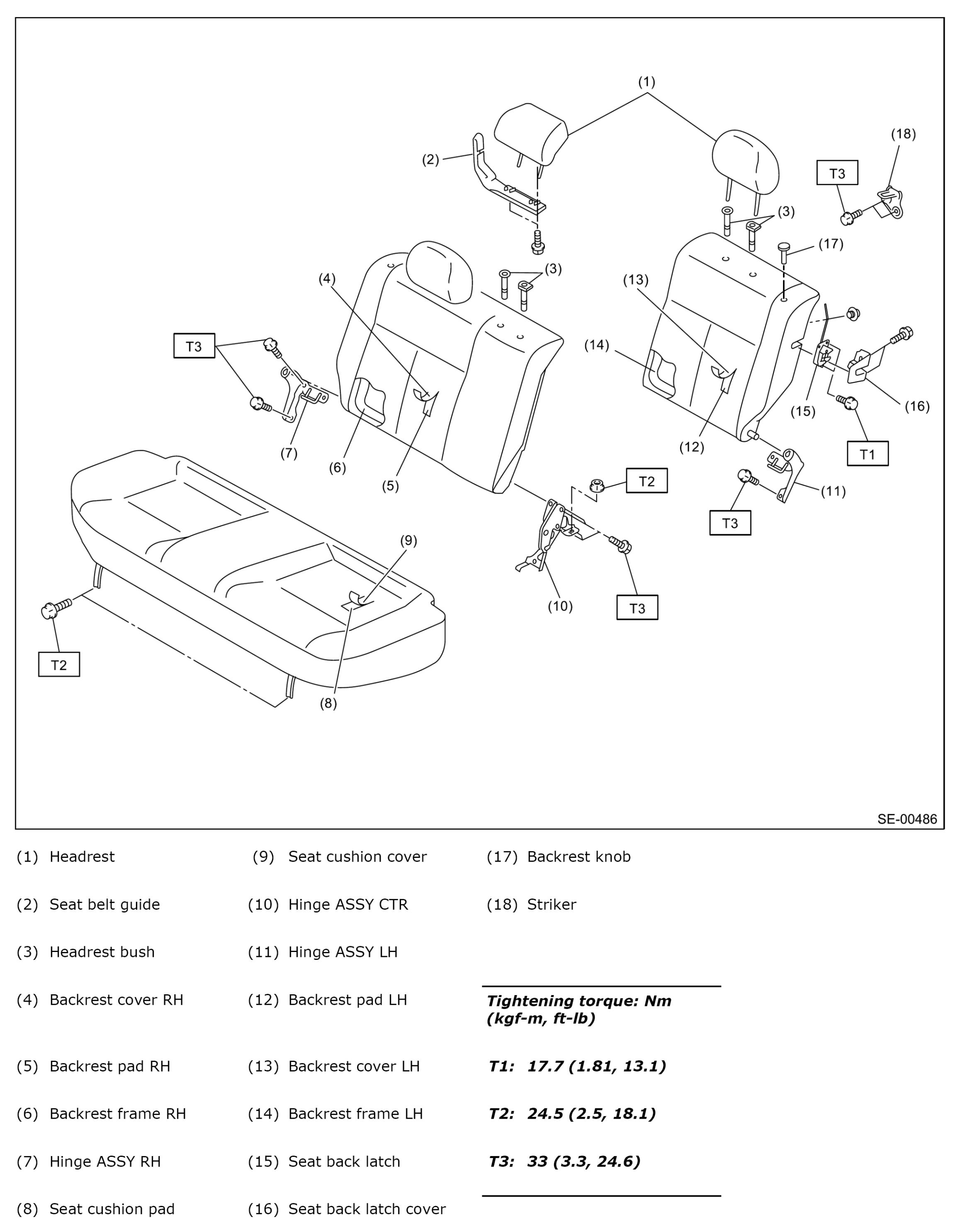 Remove the bolt caps and bolts, and then detach the rear seat cushion.