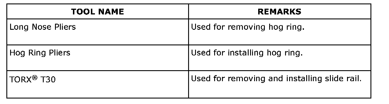 Seats: Tools and Equipment
