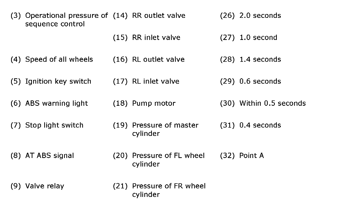 When the following conditions develop, the ABS sequence control stops and ABS operation is returned to the normal control mode.