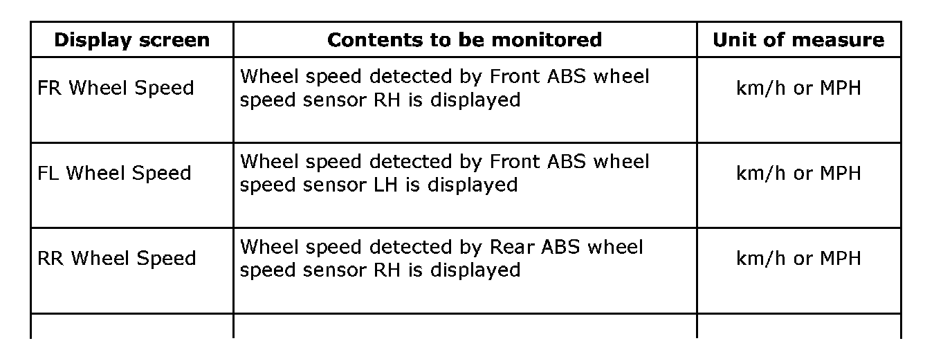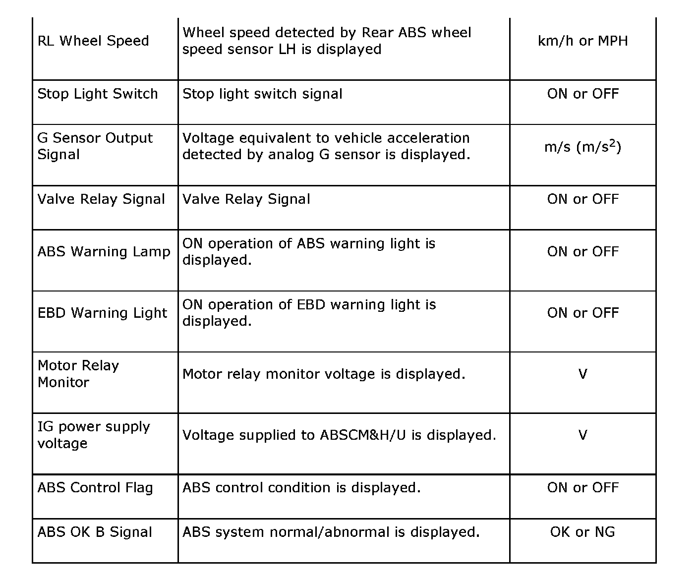 ^ If a particular DTC is not properly stored in memory (due to a drop in ABSCM&H/U power supply, etc.) when a problem occurs, the DTC, followed by a question mark "?", appears on the Vehicle Diagnostic Interface display. This shows it may be an unreliable reading.