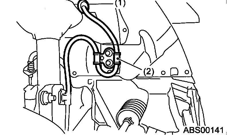 Disconnect the front ABS wheel speed sensor connector located next to the front strut mounting house in engine compartment. Pull the connector out from grommet hole to tire side.