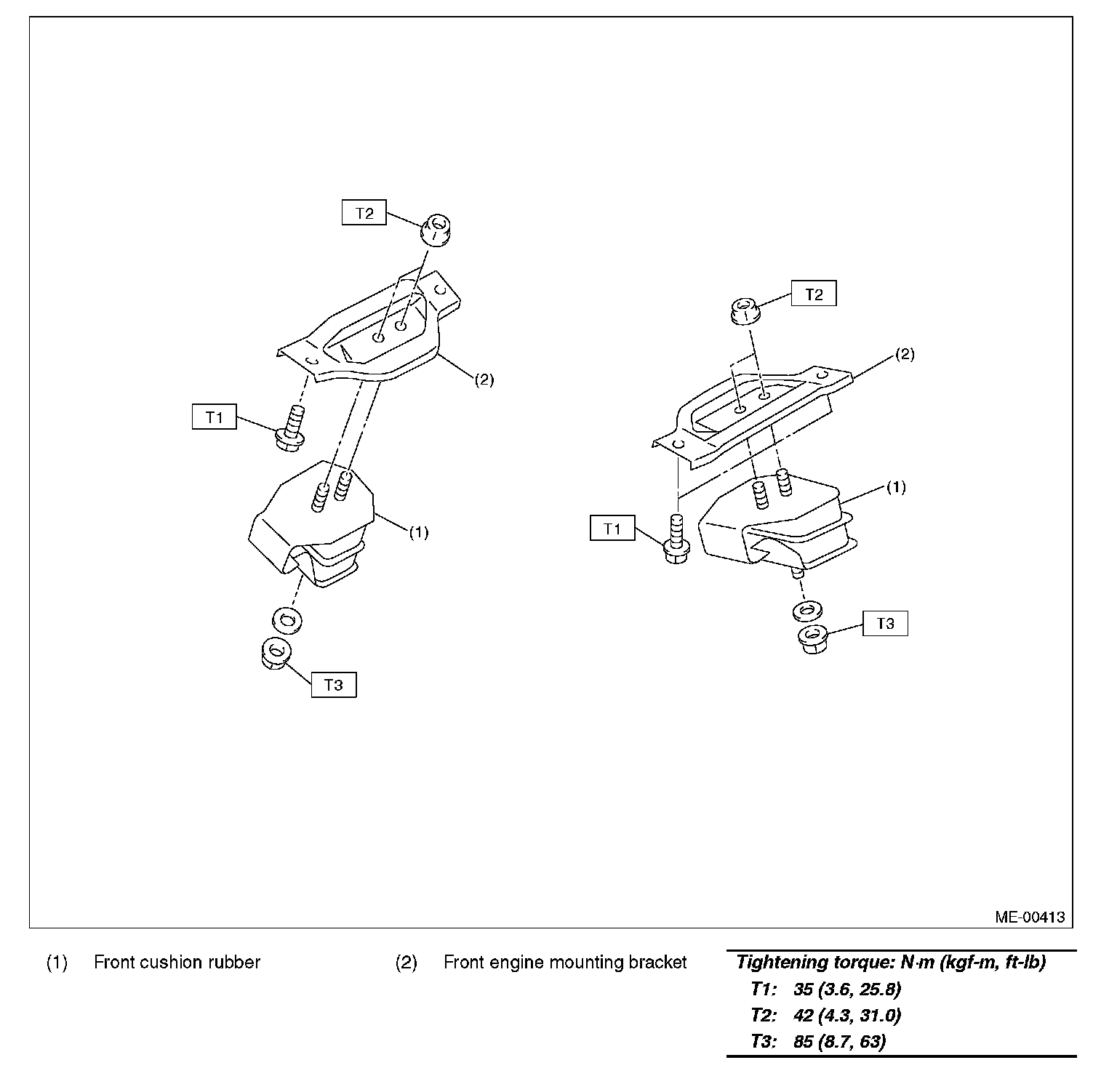 Engine mounting: 35 Nm (3.6 kgf-m, 25.8 ft. lbs.)