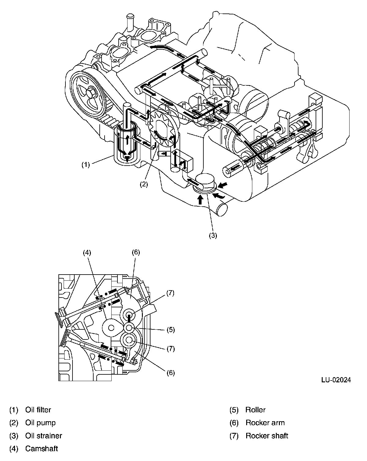 General^ The lubrication system forcibly circulates engine oil throughout the engine using an oil pump. The oil pressure is regulated by the relief valve built into the oil pump.
