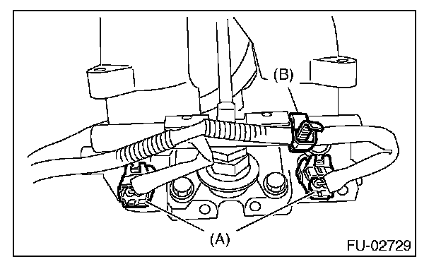 ^ Connect the hoses (A) and (B) to intake manifold.