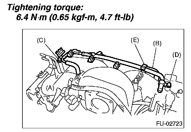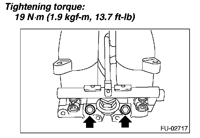 5. Tighten the bolts which install fuel injector pipe on intake manifold.