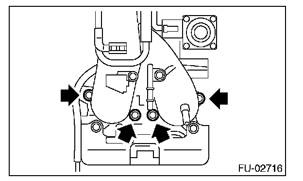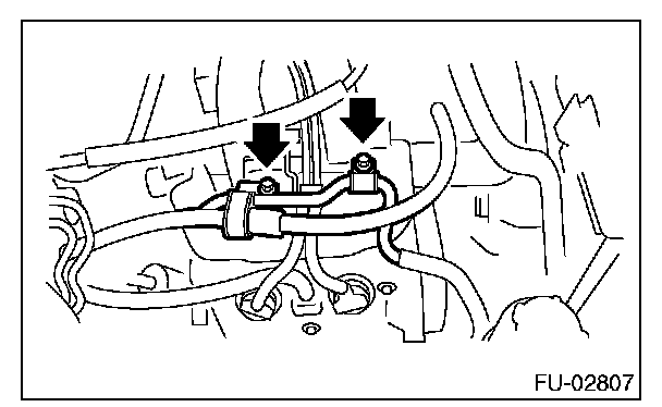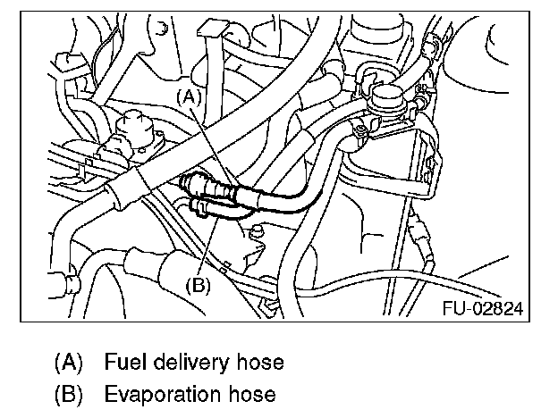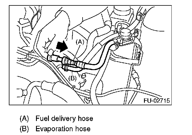 ^ Separate the quick connectors of fuel delivery line and return line by pushing the ST to the direction of arrow.