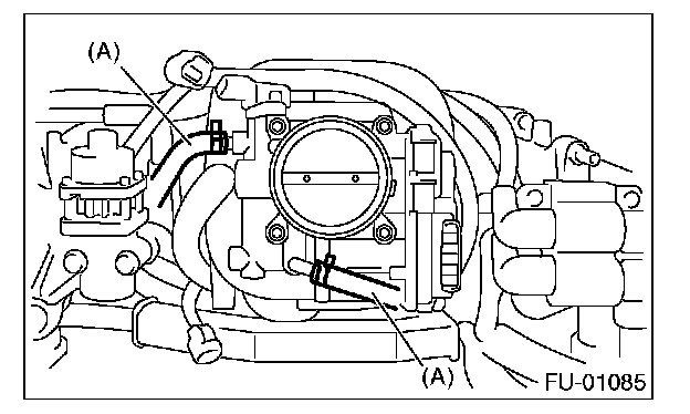 8. Disconnect the engine coolant hoses (A) from throttle body