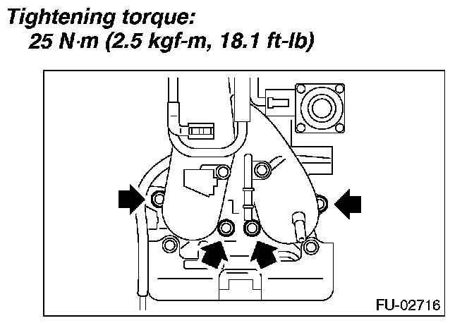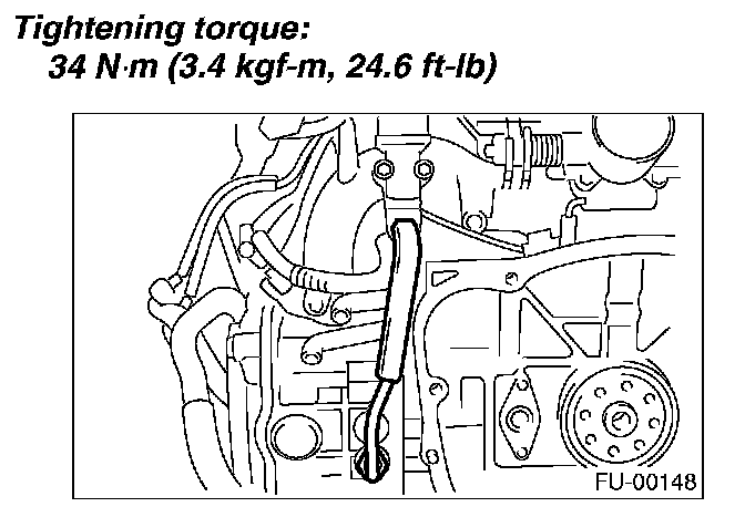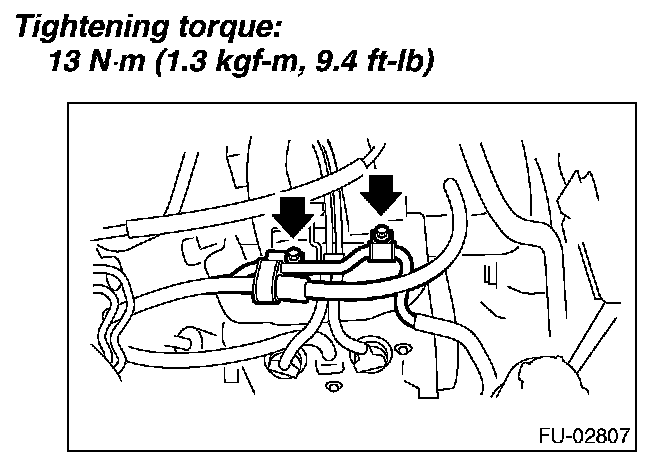 ^ Install the power steering pipes onto the right side intake manifold protector.
