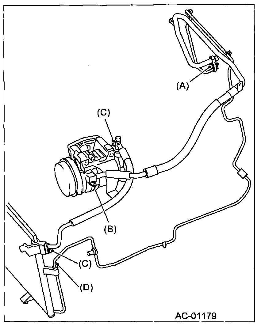 - When disconnecting/connecting hoses, do not apply an excessive force to them. Confirm that no torsion and excessive tension exists after installing.