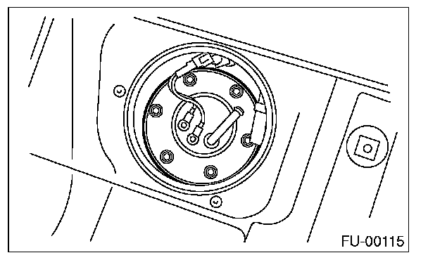 8. Remove the bolts which install the fuel sub level sensor on the fuel tank.