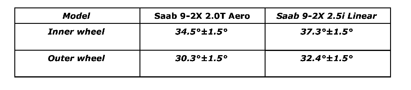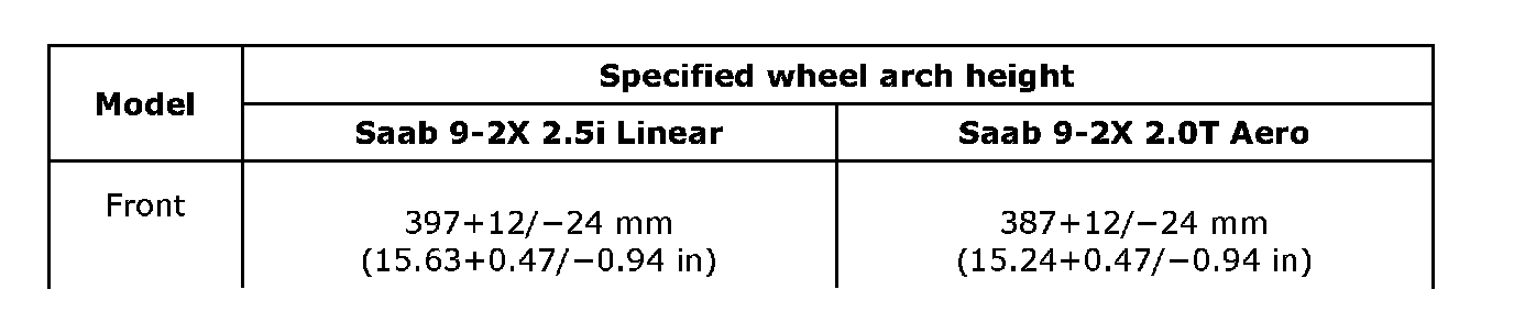 Toe-in: 0 ± 3 mm (0 ± 0.12 inch) (tolerance)