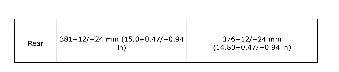 Toe-in: 1.8 ± 3 mm (0.08 ± 0.12 inch) (tolerance)