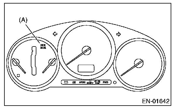 ACTIVATION OF MALFUNCTION INDICATOR LIGHT1. When the ignition switch is turned to ON (engine off), the malfunction indicator light (A) in the combination meter illuminates.