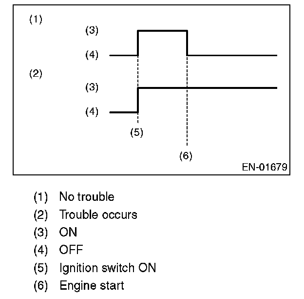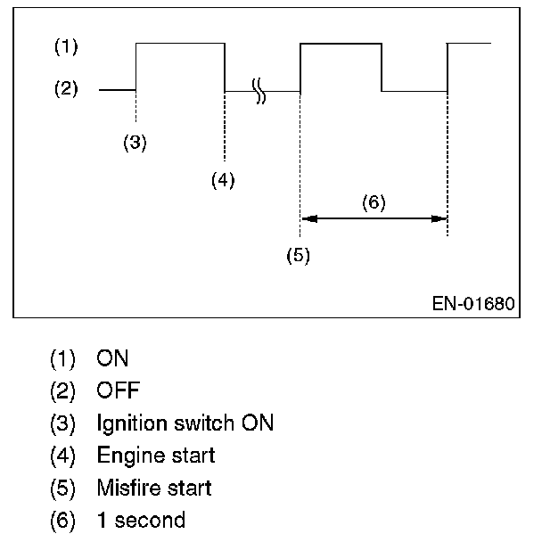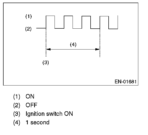 4. When the ignition switch is turned to ON (engine off) or to "START" with test mode connector connected, the malfunction indicator light blinks at a cycle of 3 Hz.