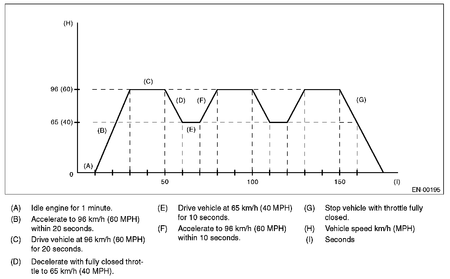 2. DRIVE CYCLE A (AFTER RUNNING 20 MINUTES AT 80 KM/H (50 MPH), IDLE ENGINE FOR 1 MINUTE.)
