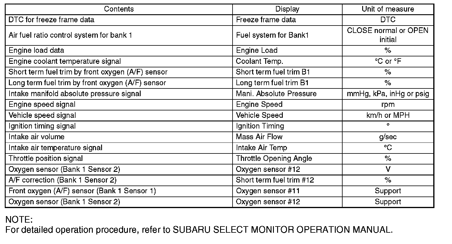NOTE: For detailed operation procedure, refer to "SUBARU SELECT MONITOR OPERATION MANUAL"