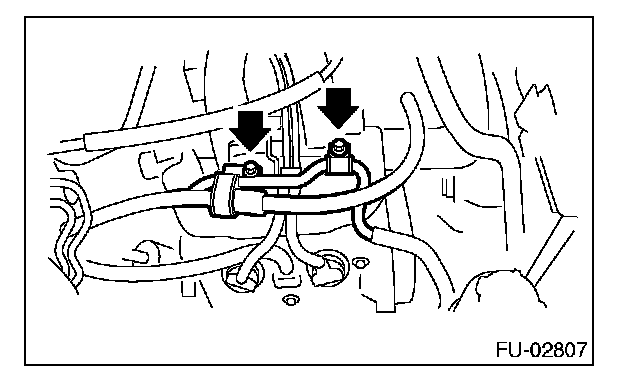 10. Remove the bolts which hold fuel injector pipe onto intake manifold.