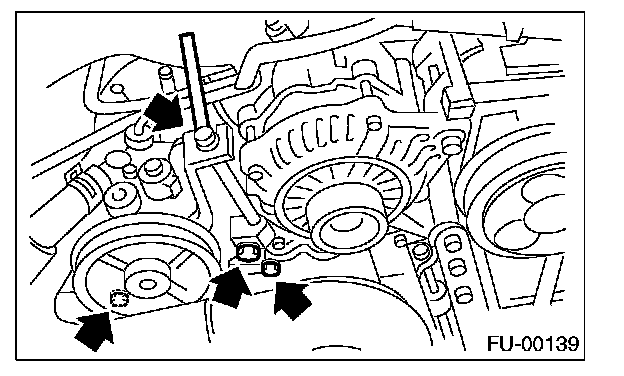 ^ Remove the bolts which install the power steering pump to the bracket.