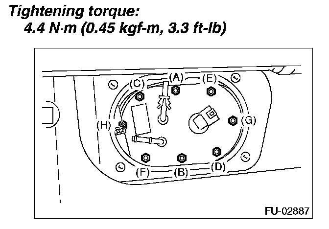 11. Remove the nuts which install the fuel pump assembly onto the fuel tank.