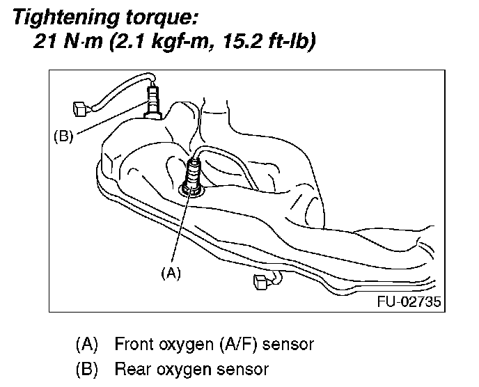 CAUTION: When removing the rear oxygen sensor, wait until the exhaust pipe cools, otherwise it will damage the exhaust pipe.